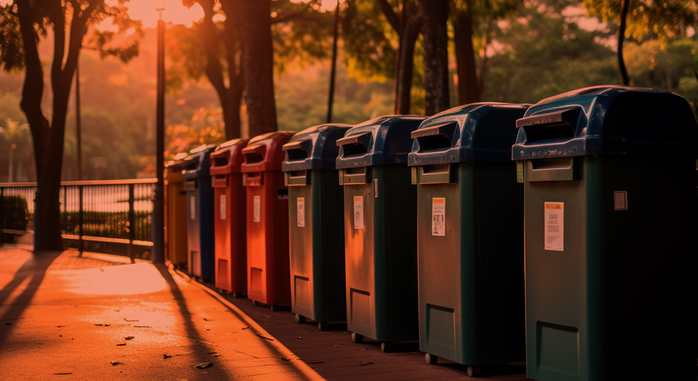 Dedicated spaces for recycling PET bottles, glass, and paper encourage sustainable waste disposal habits.